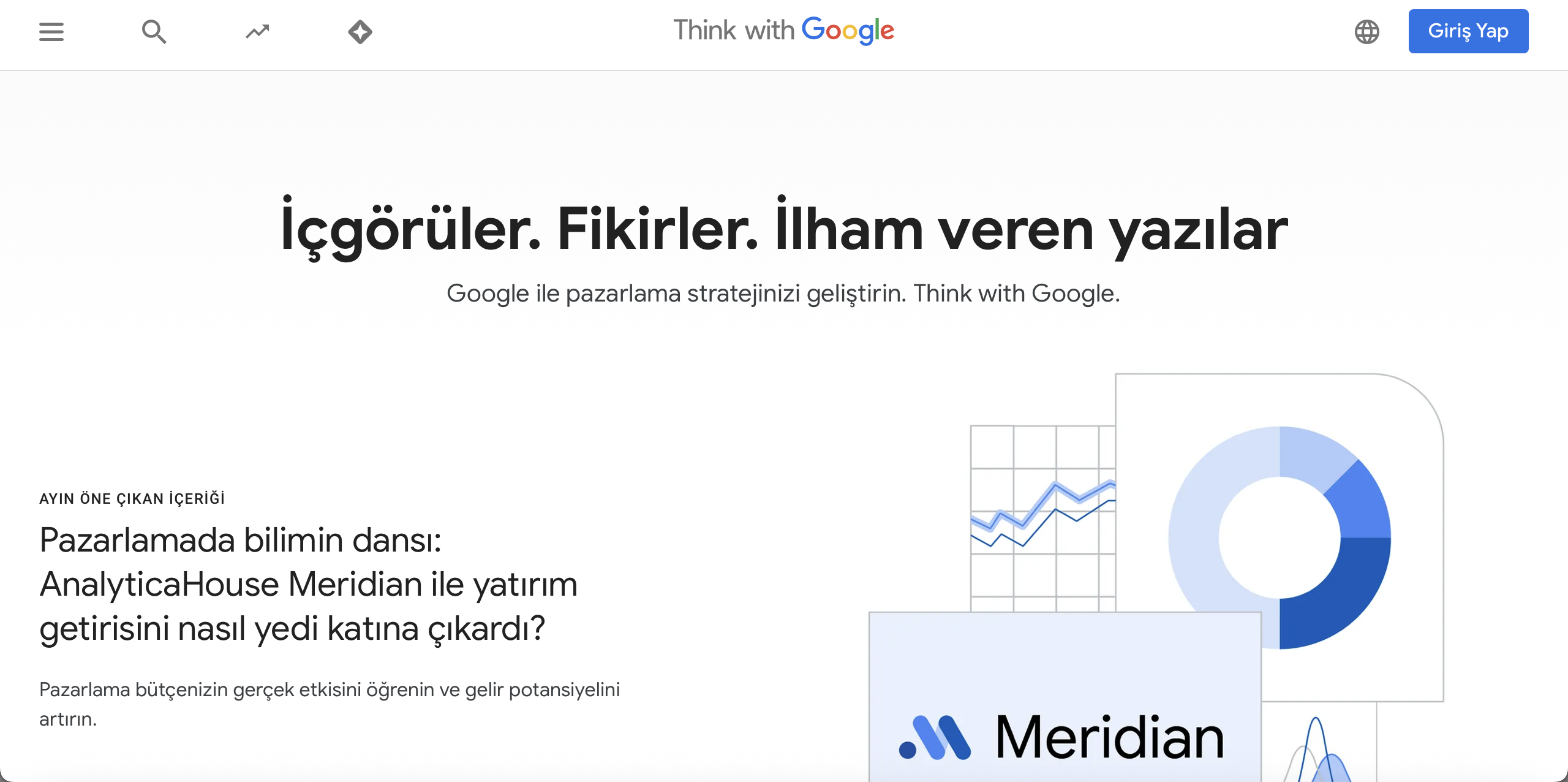 Yapay zekanın en büyük devrimlerinden biri, pazarlama kararlarını "sezgi" ve "varsayım" gibi soyut kavramlardan arındırıp, somut ve ölçülebilir verilere dayandırmasıdır. Bu felsefenin en güçlü savunucularından biri de Google'ın kendisidir. Google'ın resmi dijital pazarlama yayını olan Think with Google, tam da bu amaca hizmet eden paha biçilmez bir kaynaktır.