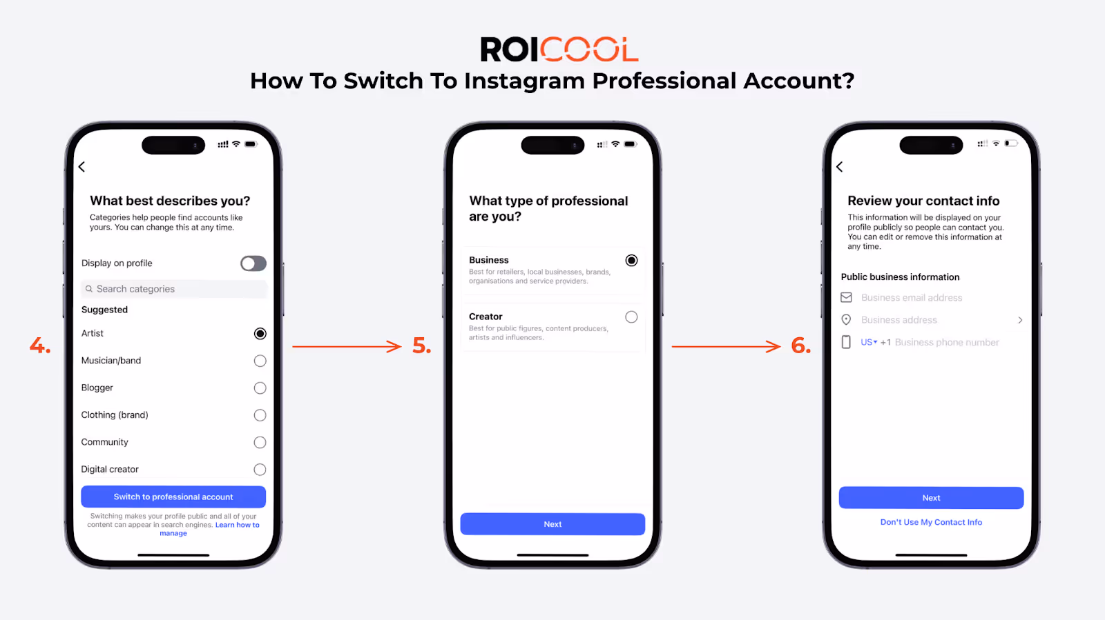 - Choose a Category: Instagram will show you a few screens explaining the benefits. After continuing, you will be asked to select a category that best describes you or your business (e.g., Blogger, Beauty, Personal Coach). You can choose to display or hide this category on your profile.