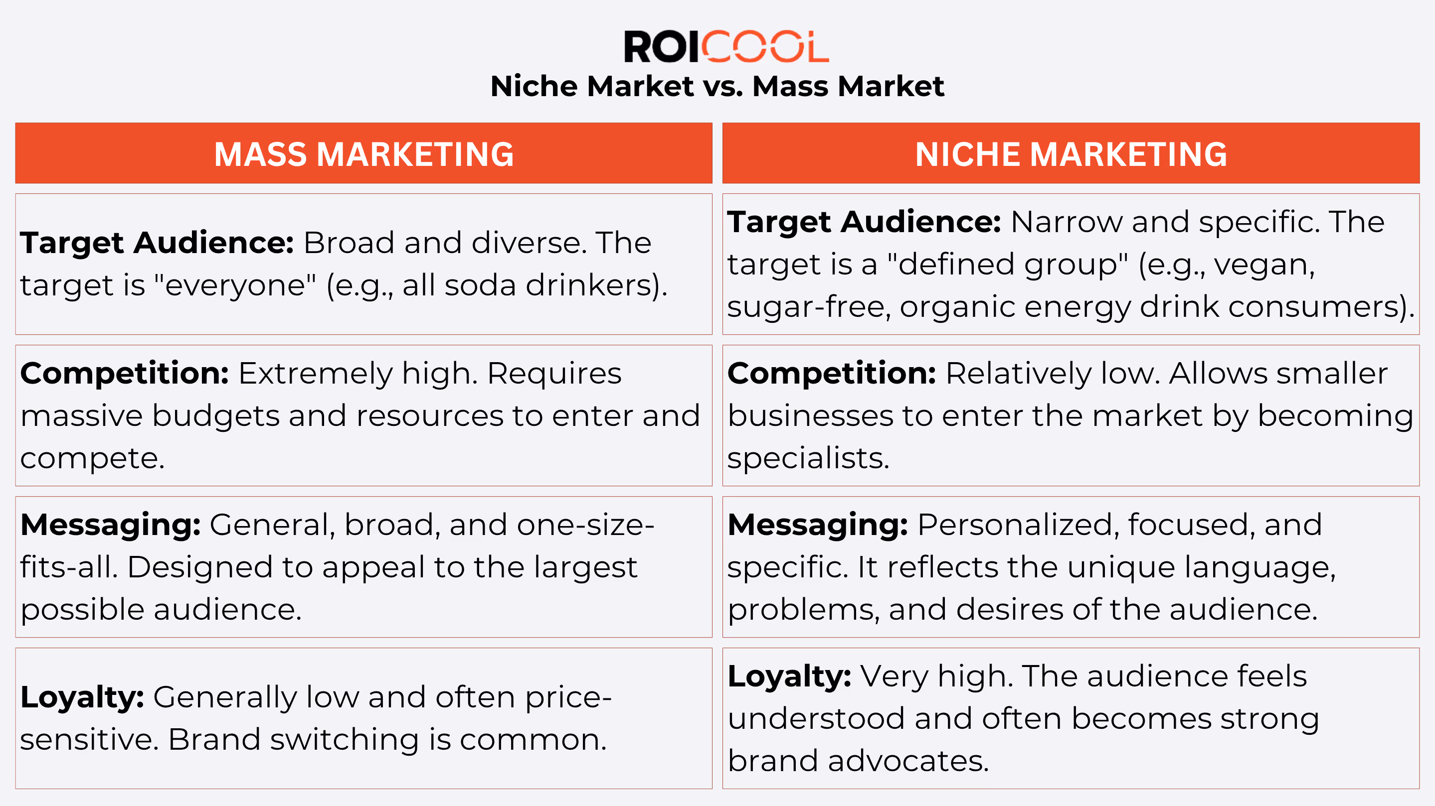 To grasp the power of niche marketing, it's helpful to contrast it with traditional mass marketing: